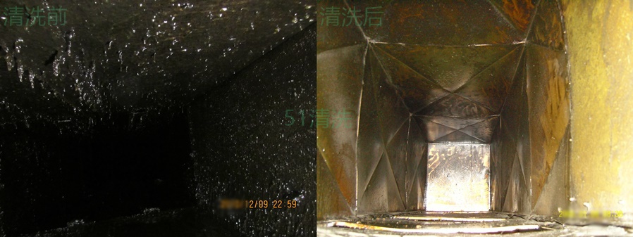 抽油烟机系统是现代大型厨房的必备设施,由于抽油烟机系统在长时间的工作使用中吸入大量的油烟,其中的废油就会吸附在吸顶、烟道和风机上,形成油污油垢。这些油污油垢主要是由油脂入油脂氧化、聚合物和附着在空气中的灰尘和微生物等组成。因常用食用油污不同于其它油污,它以氧化、聚合、交联等反应形成高分子化合物后,沉积并牢牢地粘结在系统表面(风机、烟道、风扇、水槽、喷雾头等)形成近似油漆的油污垢。因此,清洗除垢十分困难。 抽油烟机系统如果长期不清洗就会使系统的工作效率下降,使用寿命缩短,人员工作环境下降、环境卫生状况恶化,从而影响厨房的形象,严重的会导致火灾的发生. |